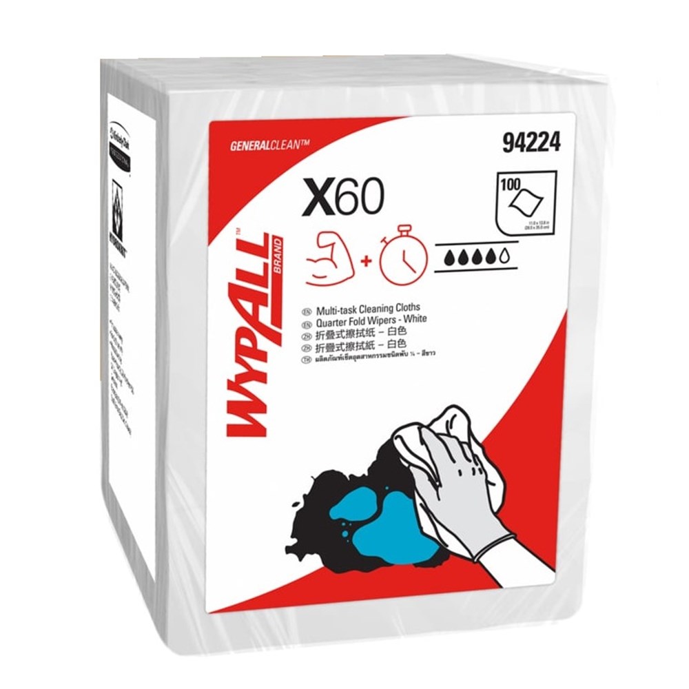 • One box of WYPALL X60 single sheet wipers, pack contains 100 wipers