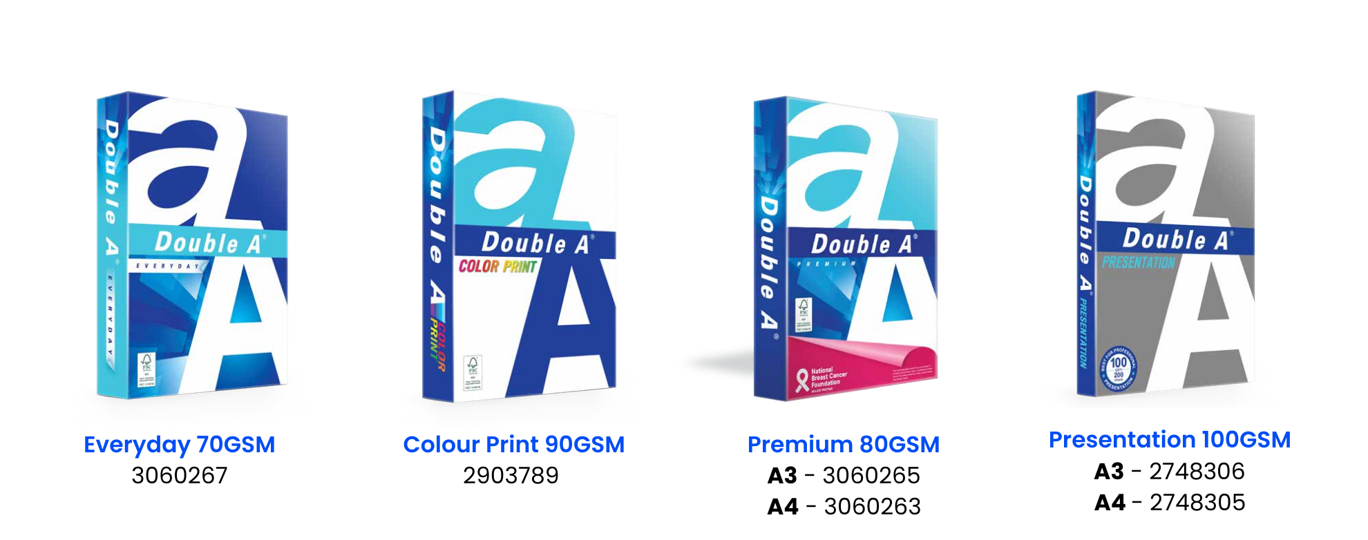 Double A is a premium paper brand recognised worldwide for its high quality, superior performance, and commitment to sustainability. Trusted in over 130 countries, Double A are the leading premium paper brand in Asia with a strong and growing presence across Australia, Europe, and the Middle East.