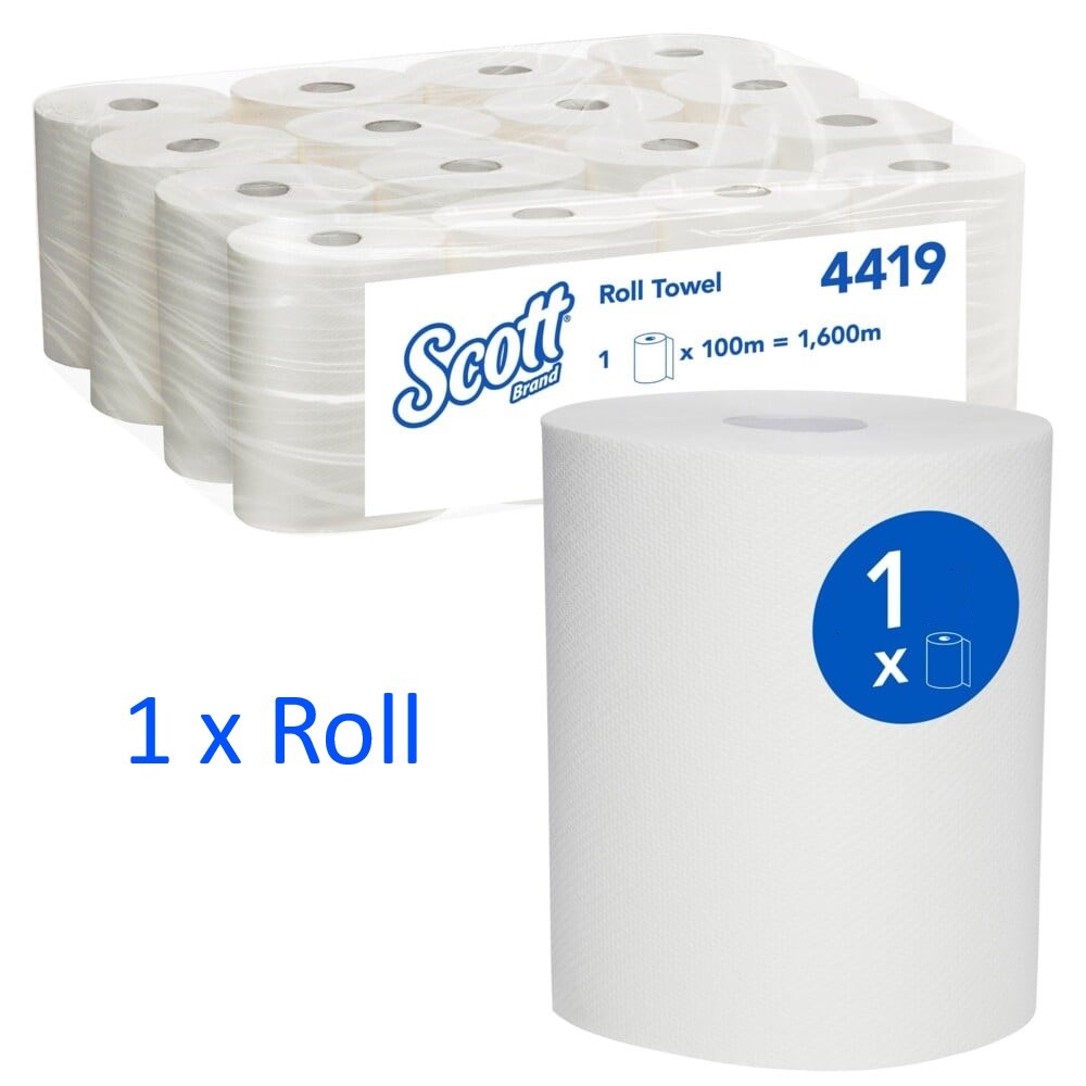 • One case of SCOTT paper towel rolls contains 1 roll; each roll contains 100m of white paper towel