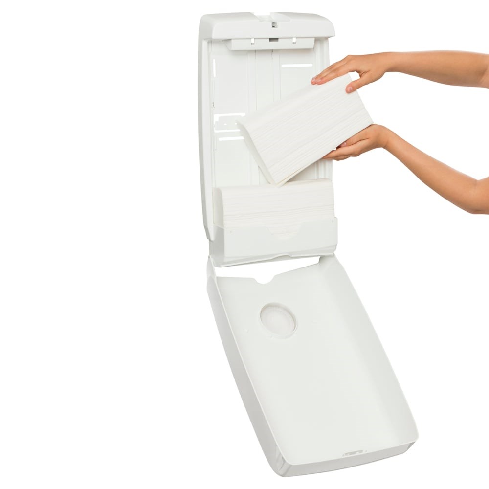 • This single sheet hand towel dispenser ensures only the towel used is touched promoting good hygiene practices