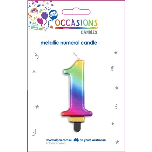 Alpen Jumbo Numerical Birthday Candle No. 1 Metallic Rainbow