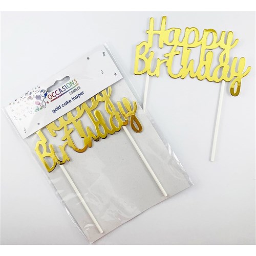 Alpen Occasions Happy Birthday Cake Topper 100W x 135mmH Metallic Gold