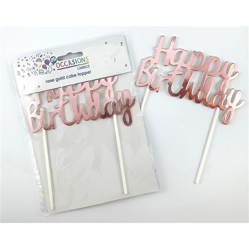 Alpen Occasions Happy Birthday Cake Topper 100W x 135mmH Metallic Rose Gold