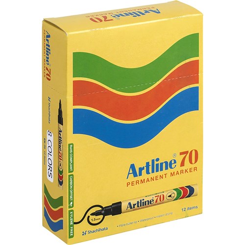 Artline 70 Permanent Markers Bullet 1.5mm Assorted Colours Pack Of 12