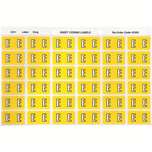 Avery Alphabet Coding Label E Side Tab 25x38mm Yellow Pack Of 180