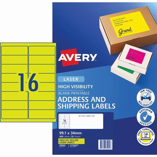 Avery High Visibility Shipping Laser Fluoro Yellow L7162FY 99.1x34mm 16UP 400 Labels