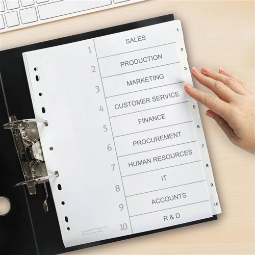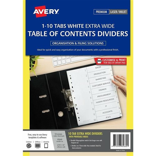 Avery L7411-10 Extra Wide Dividers Plastic A4 1-10 Index Tabs White
