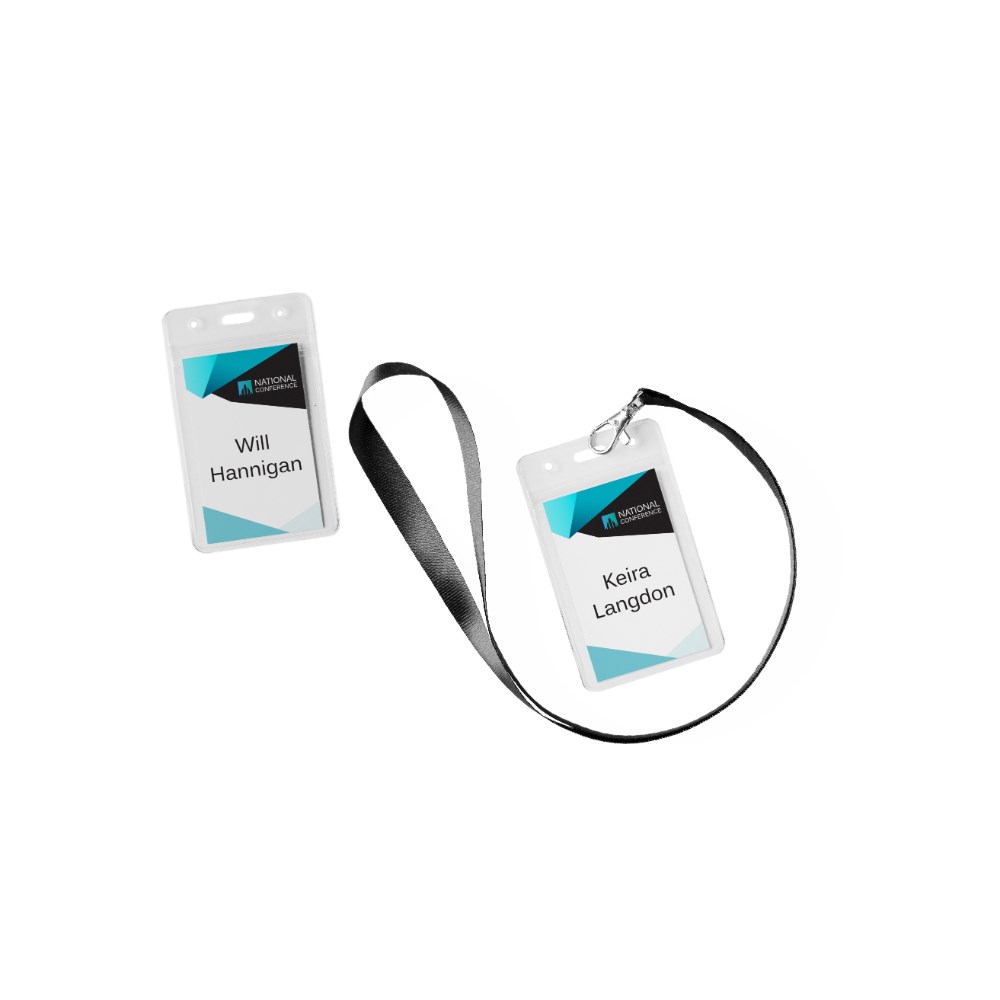 • Kit contains 10 portrait orientation reusable badge holders, 10 lanyards (black), 2 sheets of 150gsm printable insert cards, each with 8 perforated name cards.