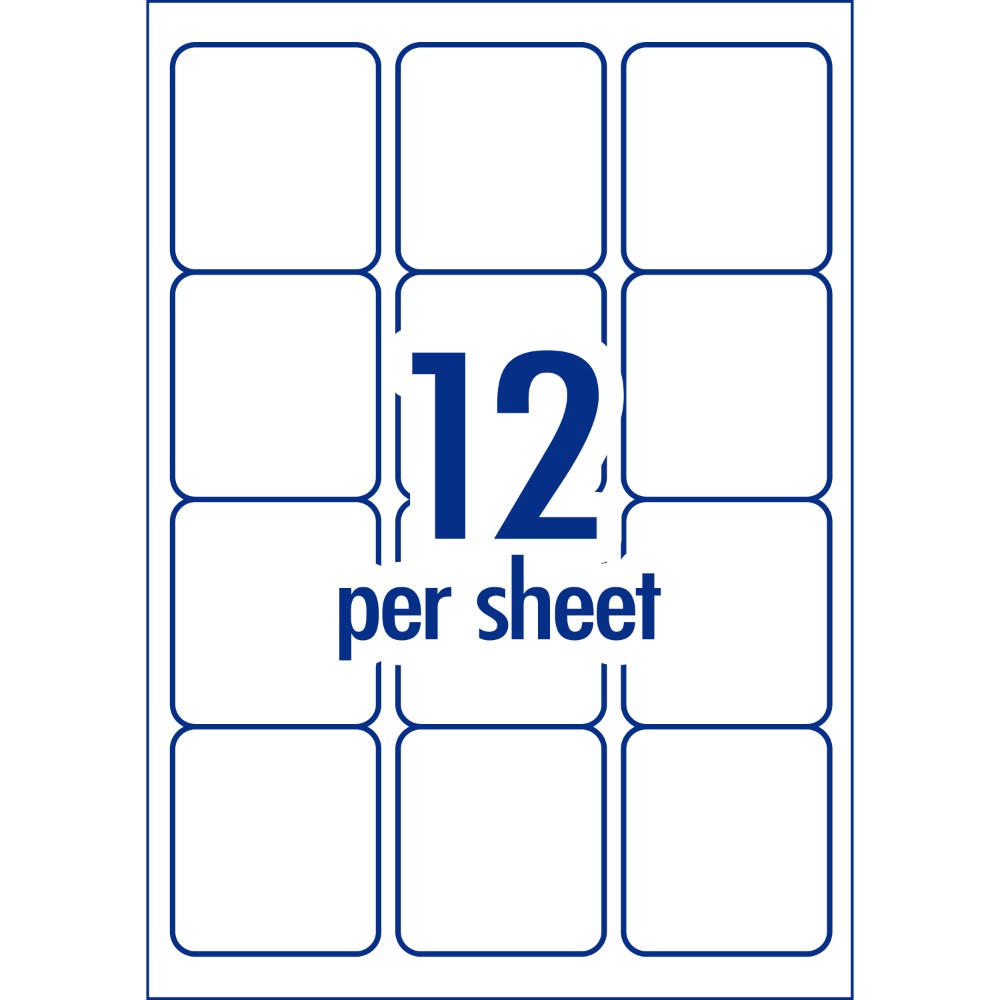 • Size: 63.5 x 72mm, 600 labels, 50 sheets, 12 labels per sheet (12UP).