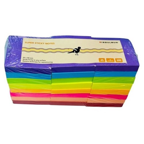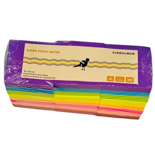 Bibbulmun Super Sticky Notes 50 x 50mm Assorted Pack Of 24
