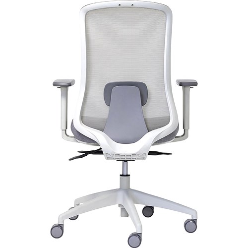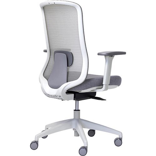 • Composition: Breathable mesh back and fabric upholstered seat.