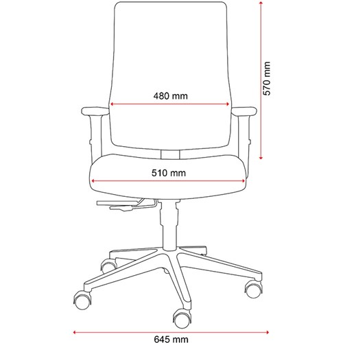 • Seat Dimensions: 510W x 440-490D x 455-540mmH. Back Height: 570mm. Back Width: 480mm.
