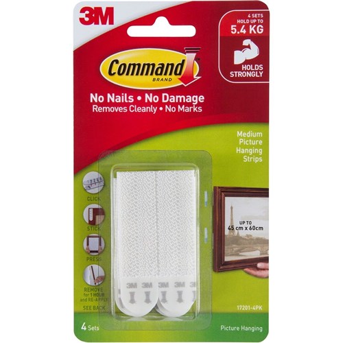 Command 17201-4PK Picture Hanging Strip Medium White Pack of 4