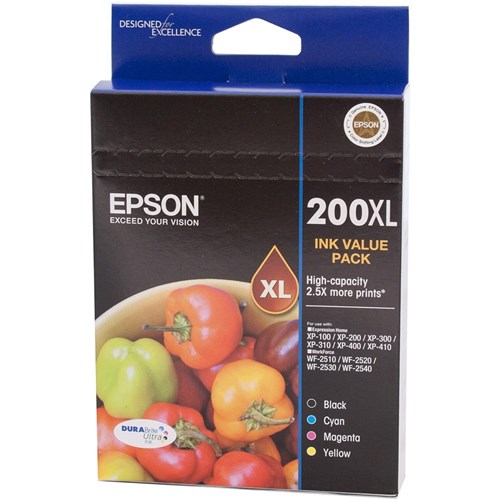 • Epson 200XL DURABrite Ultra Ink Cartridge High Yield Value Pack Of 4 Assorted