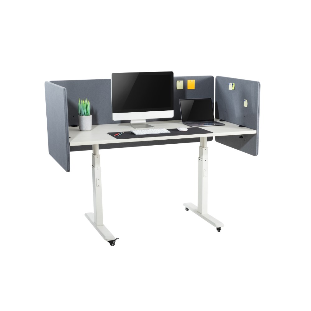 • Desk-mounted polyester fibre privacy panels are designed to create a serene and productive environment.