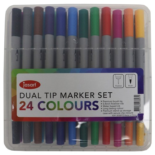 Jasart Brush Fineliners Dual Nib Assorted Set of 24
