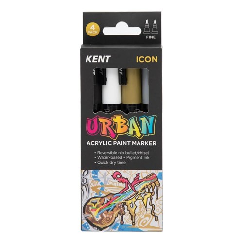 Kent Urban Paint Markers Fine 3mm Dual Nib Icon Assorted Pack Of 4