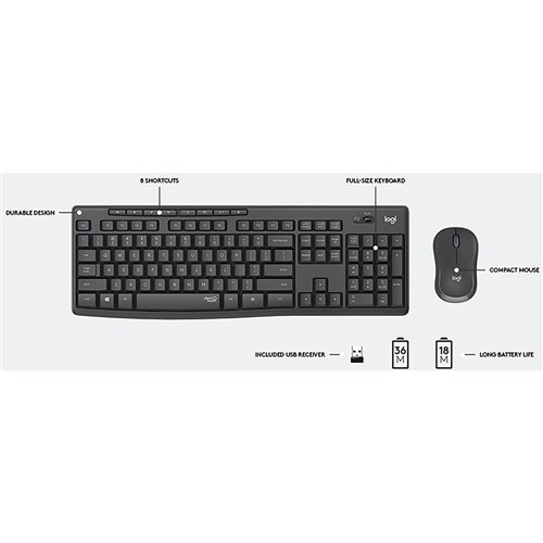 Logitech MK295 Silent Wireless Keyboard and Mouse Combo Graphite