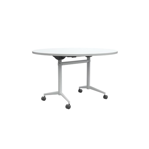 OLG Uni Round Flip Table 1200D x 720mmH White Top White Frame