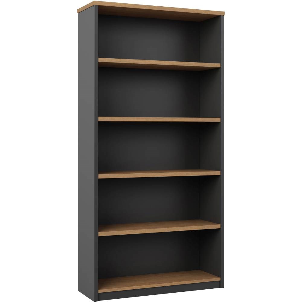 OM Premier Bookcase 900W x 320D x 1800mmH 4 Shelf Regal Walnut And Charcoal