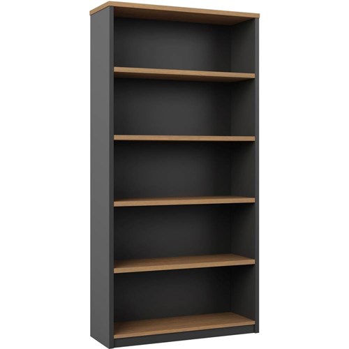 • OM Premier Bookcase 900W x 320D x 1800mmH 4 Shelf Regal Walnut And Charcoal