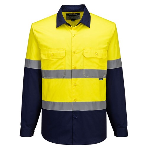 Portwest Industrial Hi-Vis Lightweight Contrast Shirt Long Sleeve 5XL Yellow/Navy