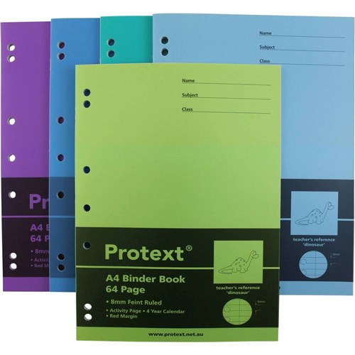 Protext Binder Book A4 7 Hole 8mm Ruled 70gsm 64 Page Dinosaur