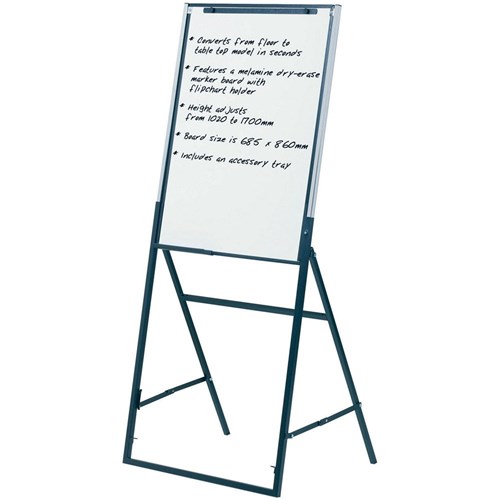 • Easel height adjusts from 1020mm - 1700mm at the touch of a button but folds away for easy storage.
