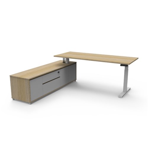 Rapidline Boost+ Executive Desk + LHS Cabinet 2020W x 1936D x 620-1270mmH Oak/White
