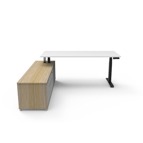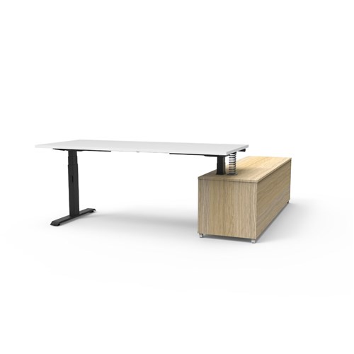 Rapidline Boost+ Executive Desk + LHS Cabinet 2020W x 1936D x 620-1270mmH White/Blk