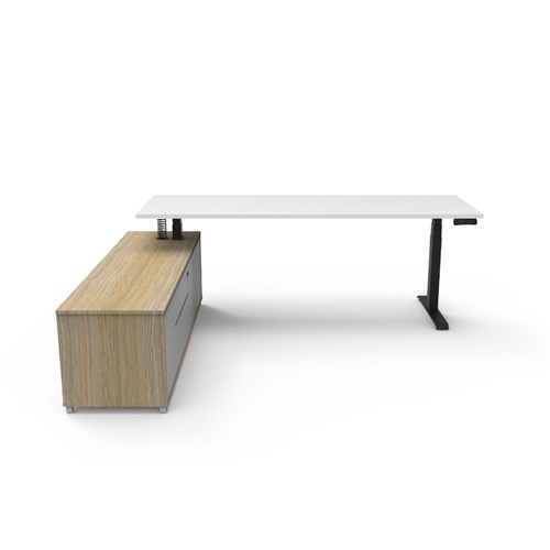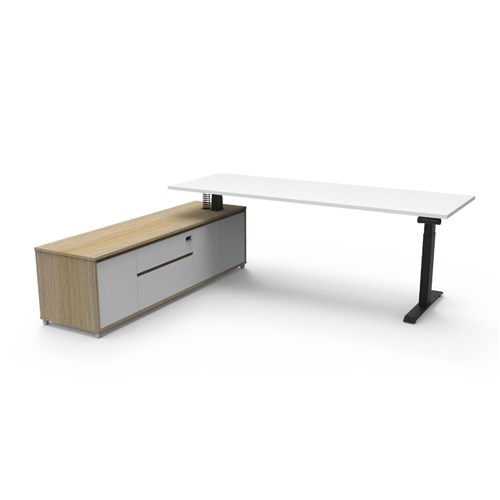 Rapidline Boost+ Executive Desk + LHS Cabinet 2270W x 1936D x 620-1270mmH White/Blk