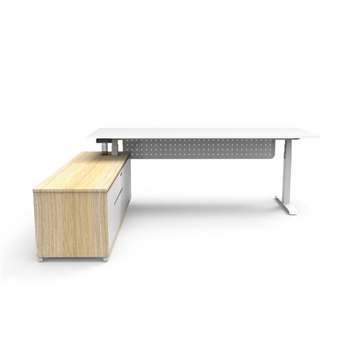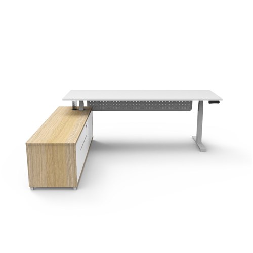 Rapidline Boost+ Executive Desk + LHS Cabinet+Panel 2270W x 1936D x 620-1270mmH Wht/Wht