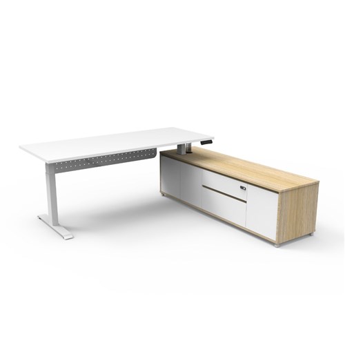 Rapidline Boost+ Executive Desk + RHS Cabinet+Panel 2020W x 1936D x 620-1270mmH Wht/Wht