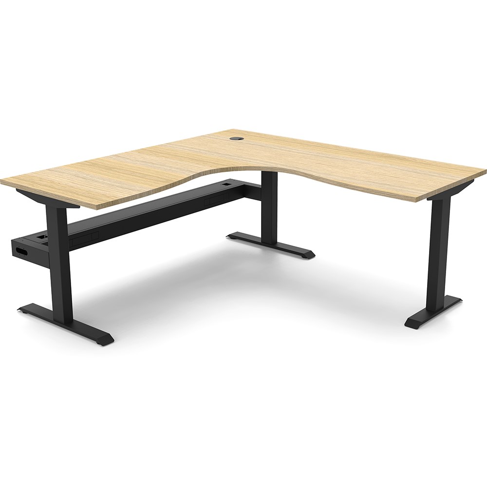 Rapidline Boost Static Corner Workstation + Tray 1800/1500W x 750D x 730mmH Oak/Black