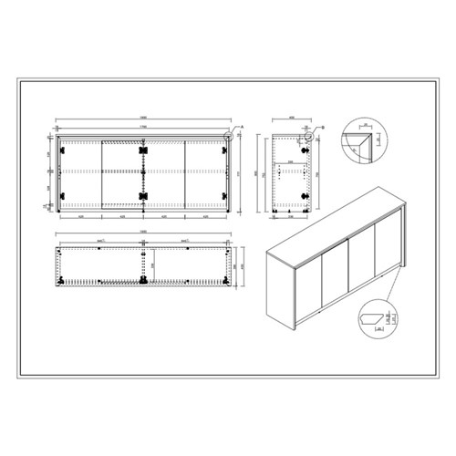 • Offers ample storage space with its four swing doors and adjustable shelves.