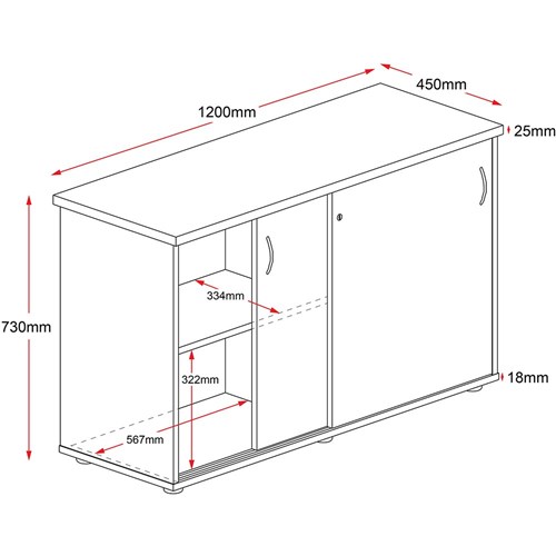 Rapidline Credenza Sliding Doors 1200W x 450D x 730mmH Oak And Ironstone