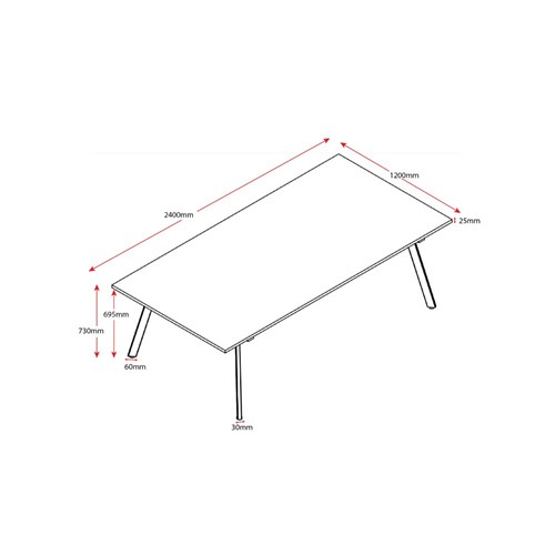 Rapidline Eternity Meeting And Boardroom Table 2400W x 1200D x 730mmH Cherry Top Black Base