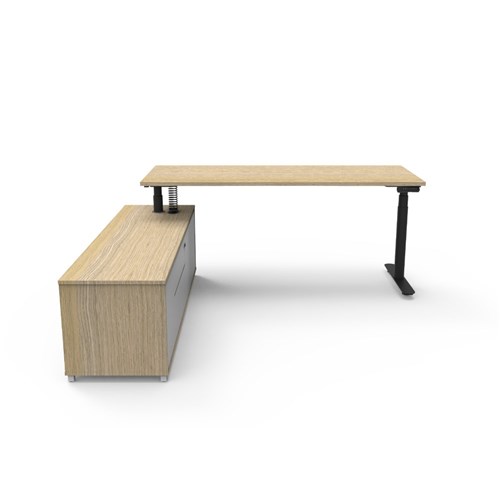 Rapidline Halo+ Executive Desk + LHS Cabinet 2020W x 2011D x 620-1270mmH Oak/Black