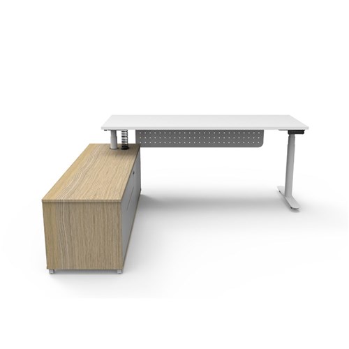 Rapidline Halo+ Executive Desk + LHS Cabinet + Panel 2020W x 1936D x 620-1270mmH White/Wht