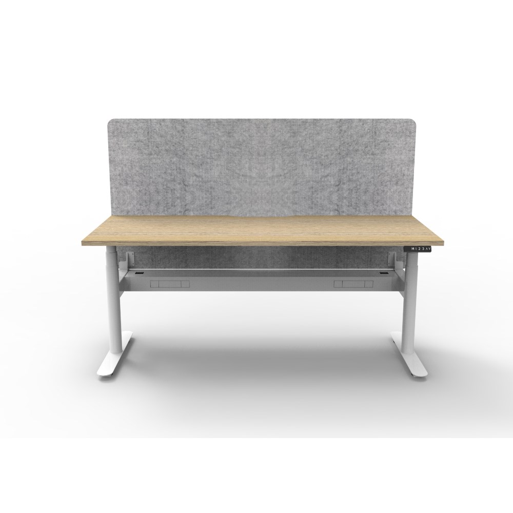 Rapidline Halo+ Single Sided Workstation + Grey Eco Screen +Tray 1500Wx620-1270mmH Oak/Wh