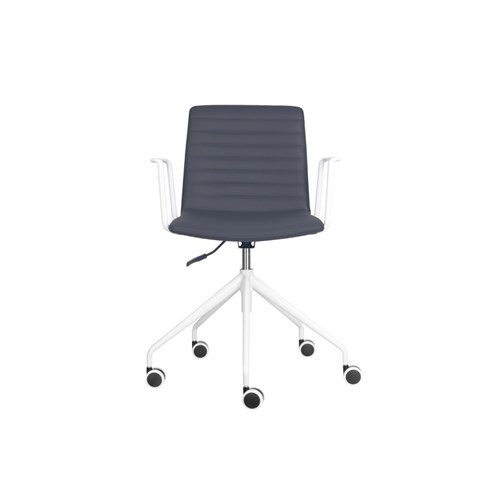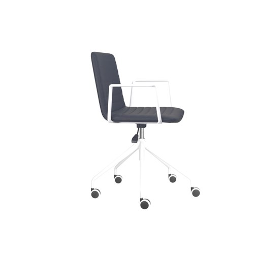 Rapidline Pixel Breakout Room Chair With Arms White Legs French Navy PU Leather Seat
