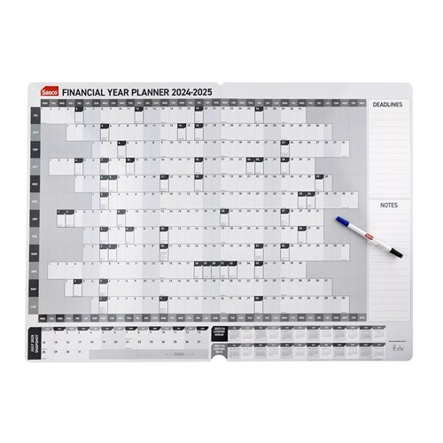 Sasco Financial Year Wall Planner 870 X 610mm Year To View Grey