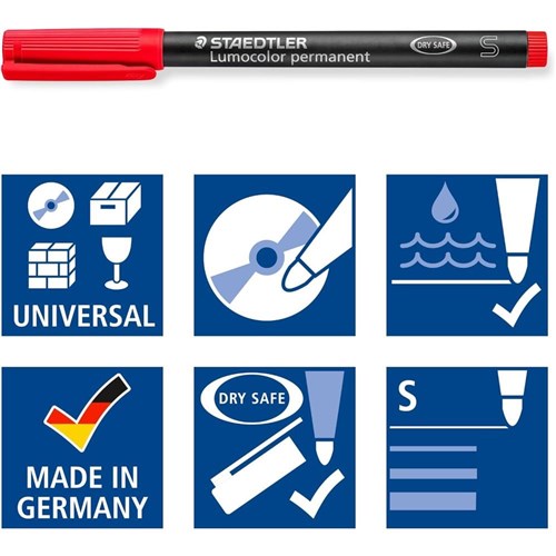 • Excellent smudge-proof and waterproof qualities on almost all surfaces. Dries in seconds, therefore ideal for left-handed users.