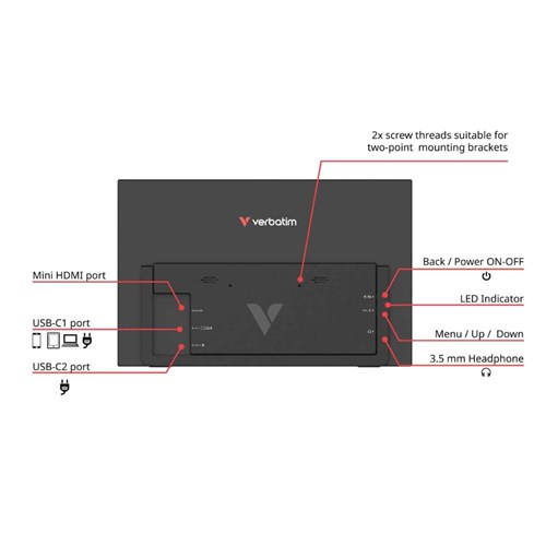 Verbatim Light Series Full HD 1080P Portable Touch Screen Monitor 15.6 Inch Black