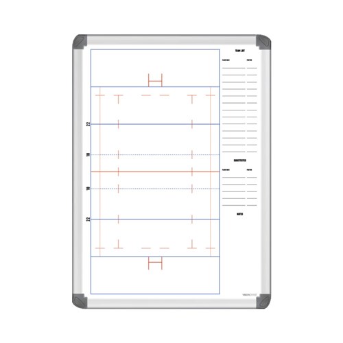 Visionchart Coaches Tactical Whiteboard 600 x 400mm Rugby Union Aluminium Frame