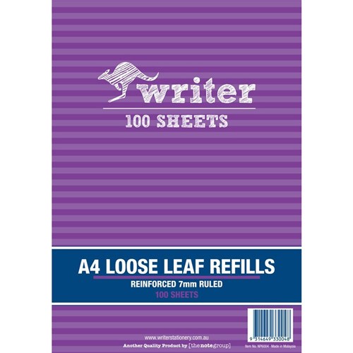 Writer Binder Refills A4 7mm Ruled Reinforced Pack of 100