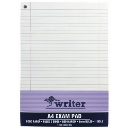 Writer Bond Pad A4 Exam Ruled 1 Hole 100 Sheets
