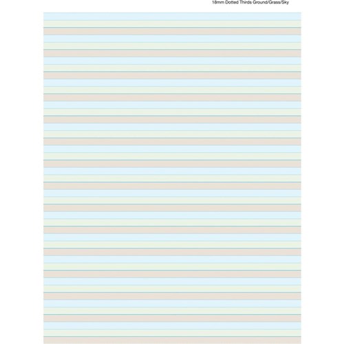 • Brown (ground), green (grass), blue (sky) printed lines for learning to write.