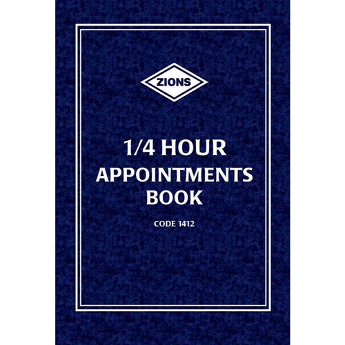 Zions 1412 Appointment Book A4 1/4Hr 8am to 9pm 192 Page