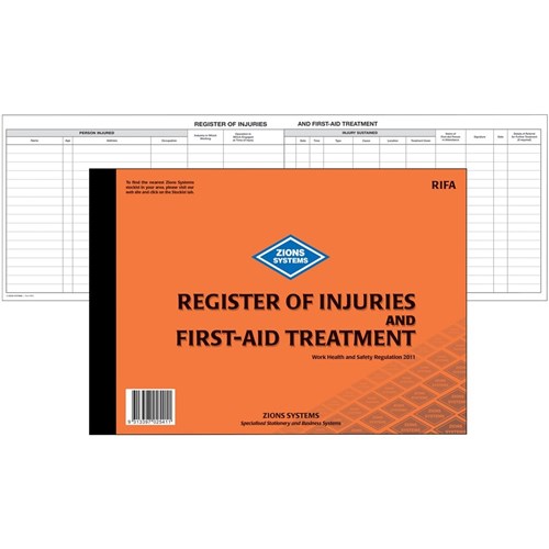 Zions RIFA Register Of Injuries & First Aid Treatment A4 Book 50 Page